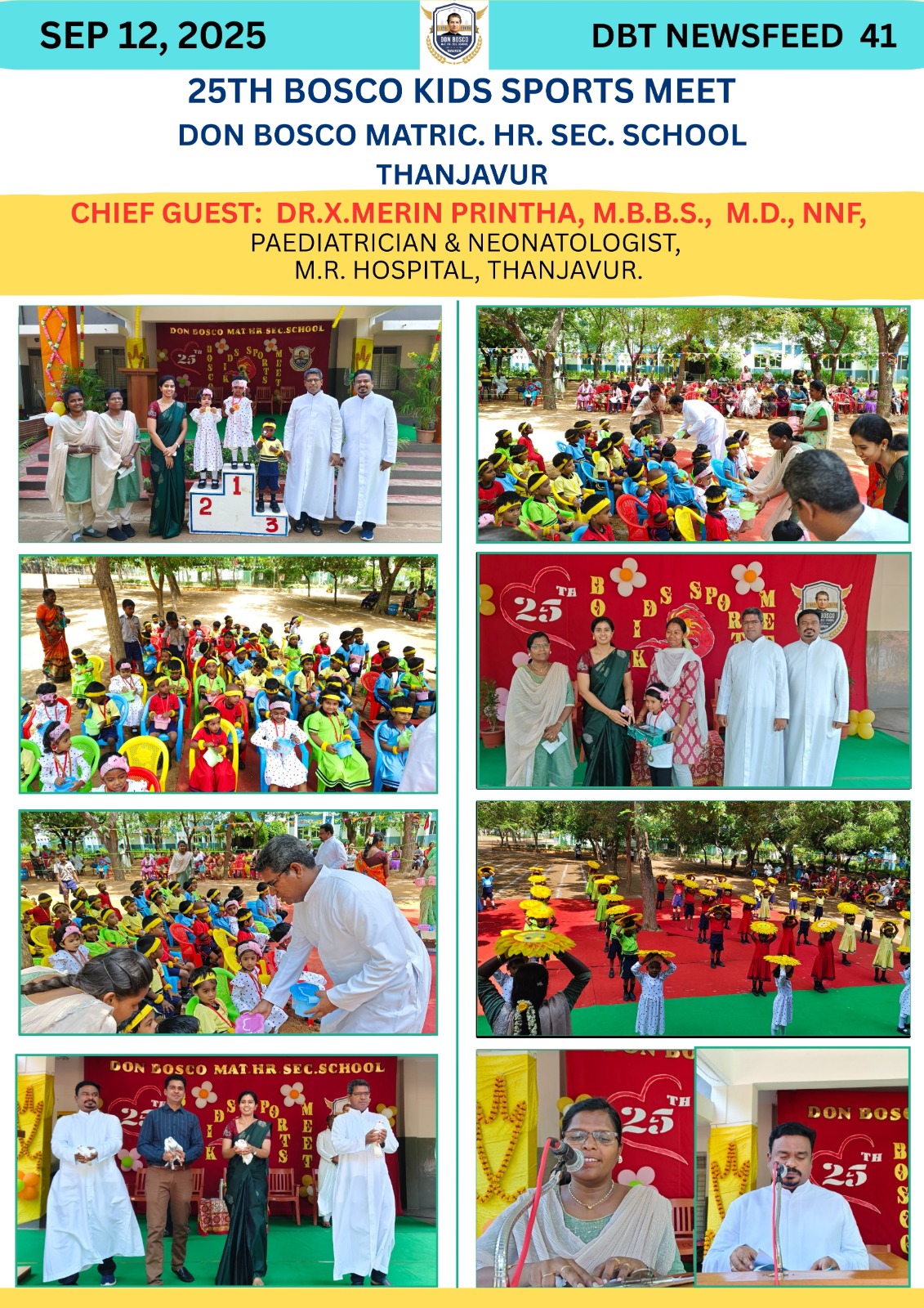 Our KG 25th BOSCO KIDS SOPRTS MEET 2025-26 was held on Sep 12, 2025 honoring the chief guest DR. X. MERLIN PRINTHA, M.B.B.S, M.D, NNF, Paediatrician & Neonatologist, M.R. HOSPITAL, Thanjavur.