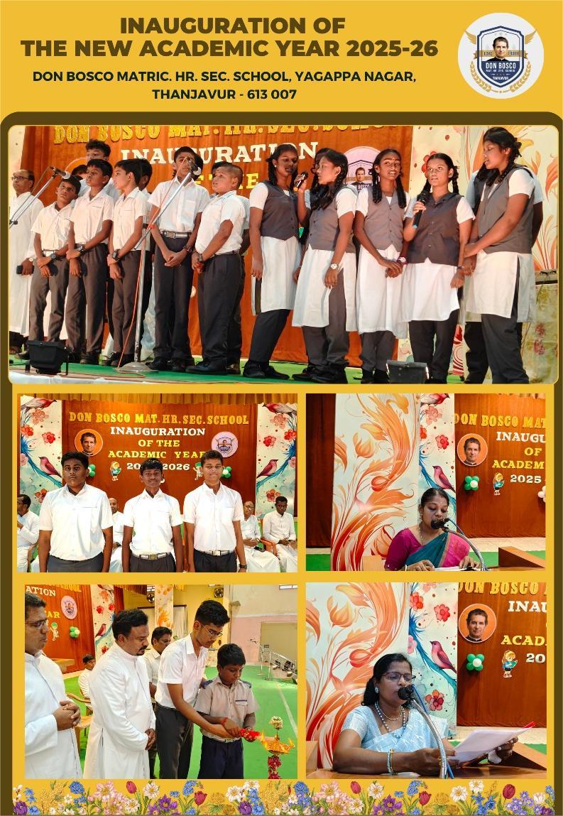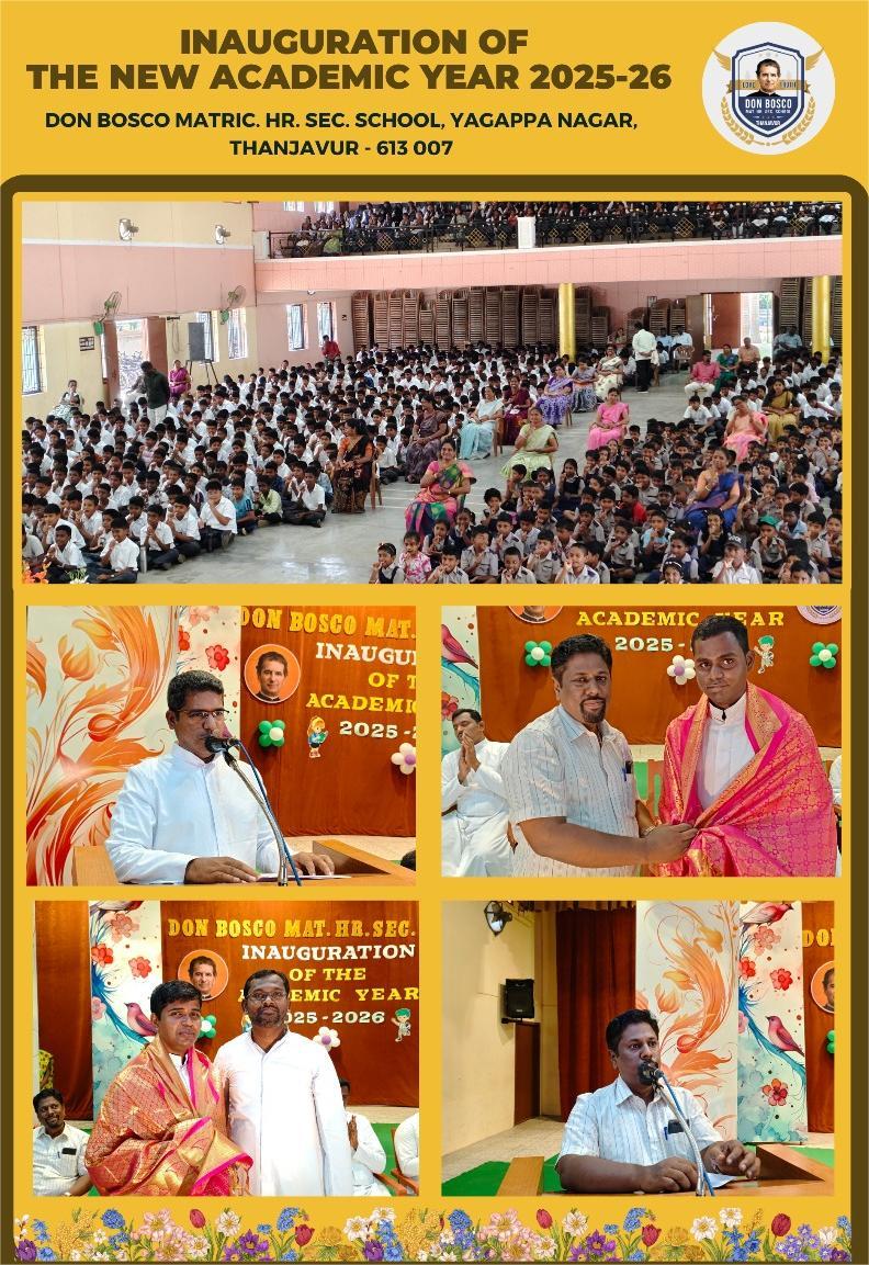 A new academic year is like a new year for the students . And so the celebrations of Welcoming our new Academic year 2025- 2026 with an amazing Inauguration ceremony in our Don Bosco MHSS, Thanjavur. Here are a few glimpse of our new beginnings.